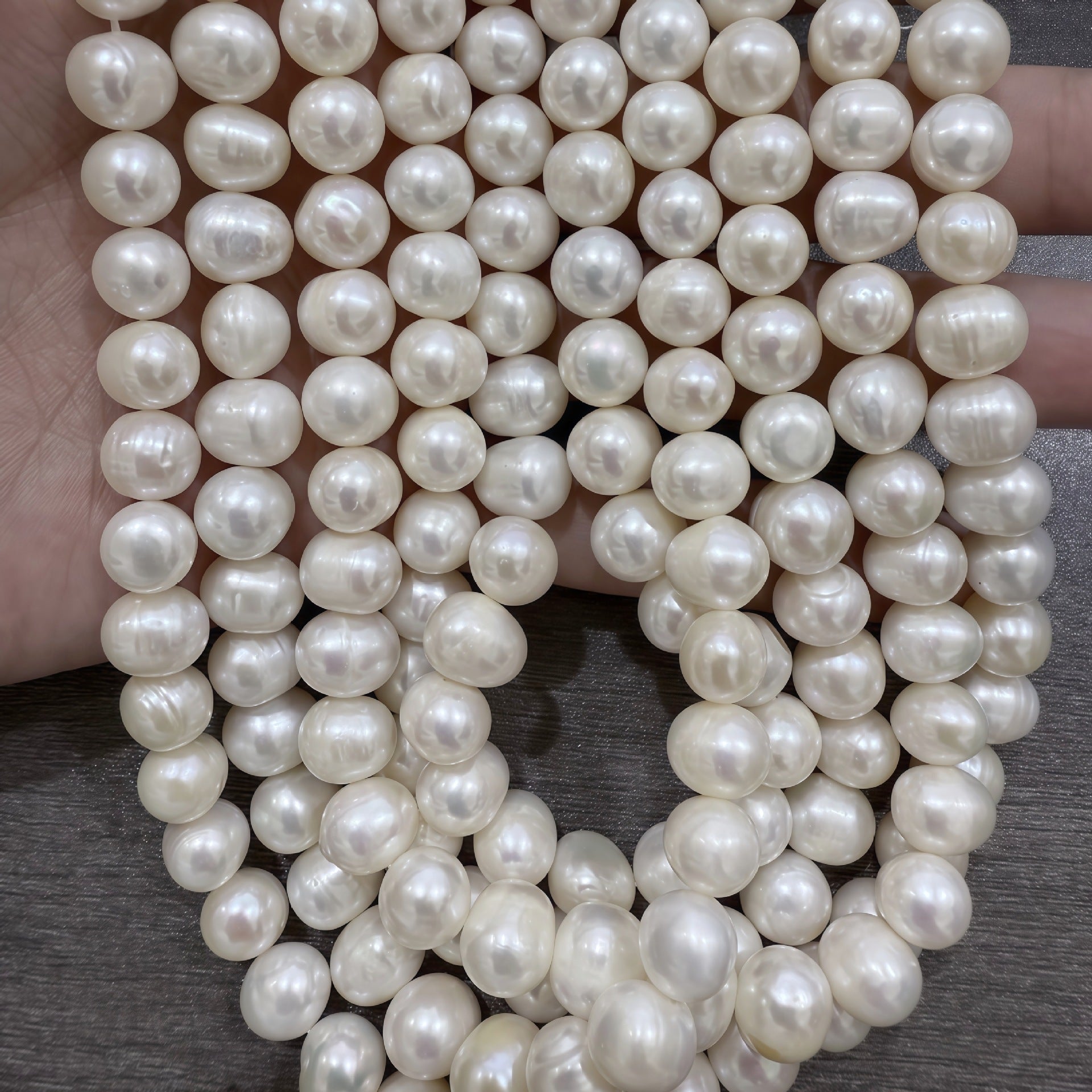 Premium 9–10mm near-round freshwater pearl beads with natural luster. Perfect for DIY necklaces, earrings, and handmade jewelry designs.