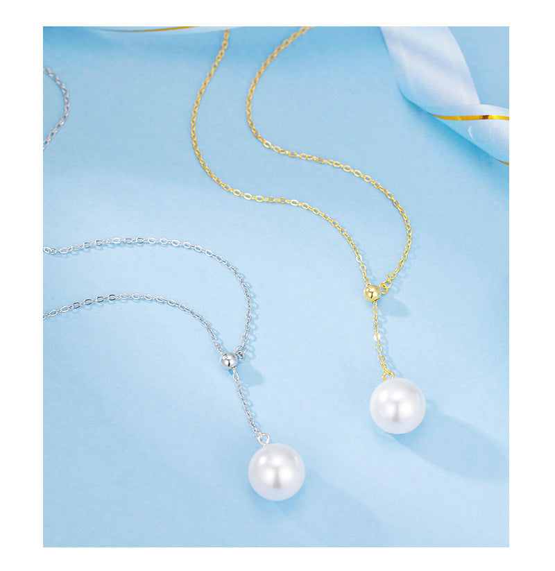 925 sterling silver Australian white highlight bead necklace female niche design minimalist wind pull adjustable fringed collarbone chain