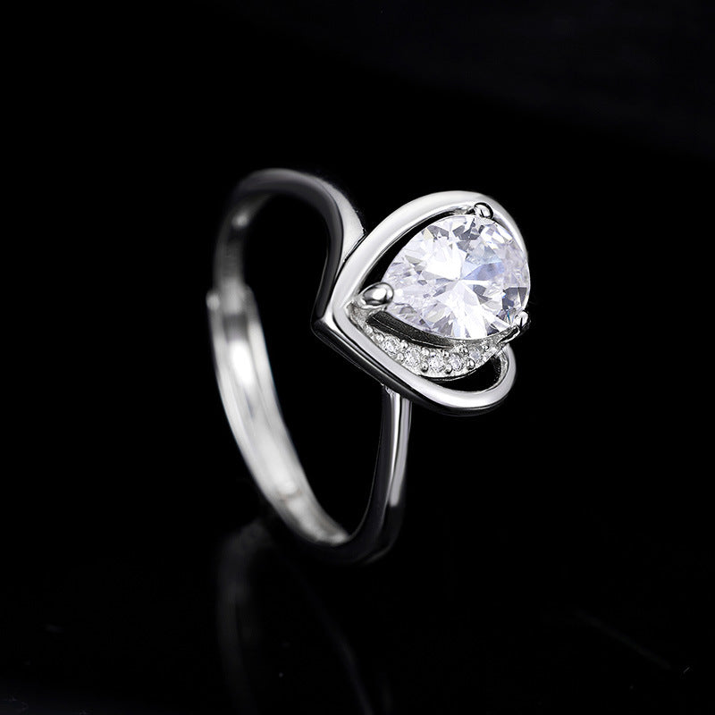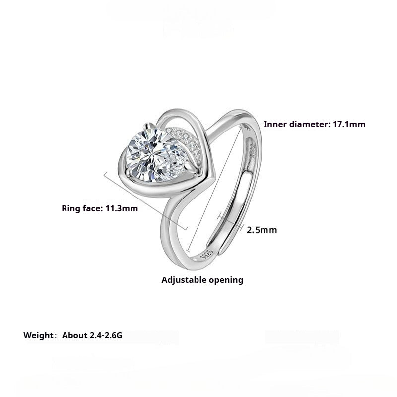 925 sterling silver ring women's niche design high-end love zirconium setting opening adjustable ring Valentine's Day gift