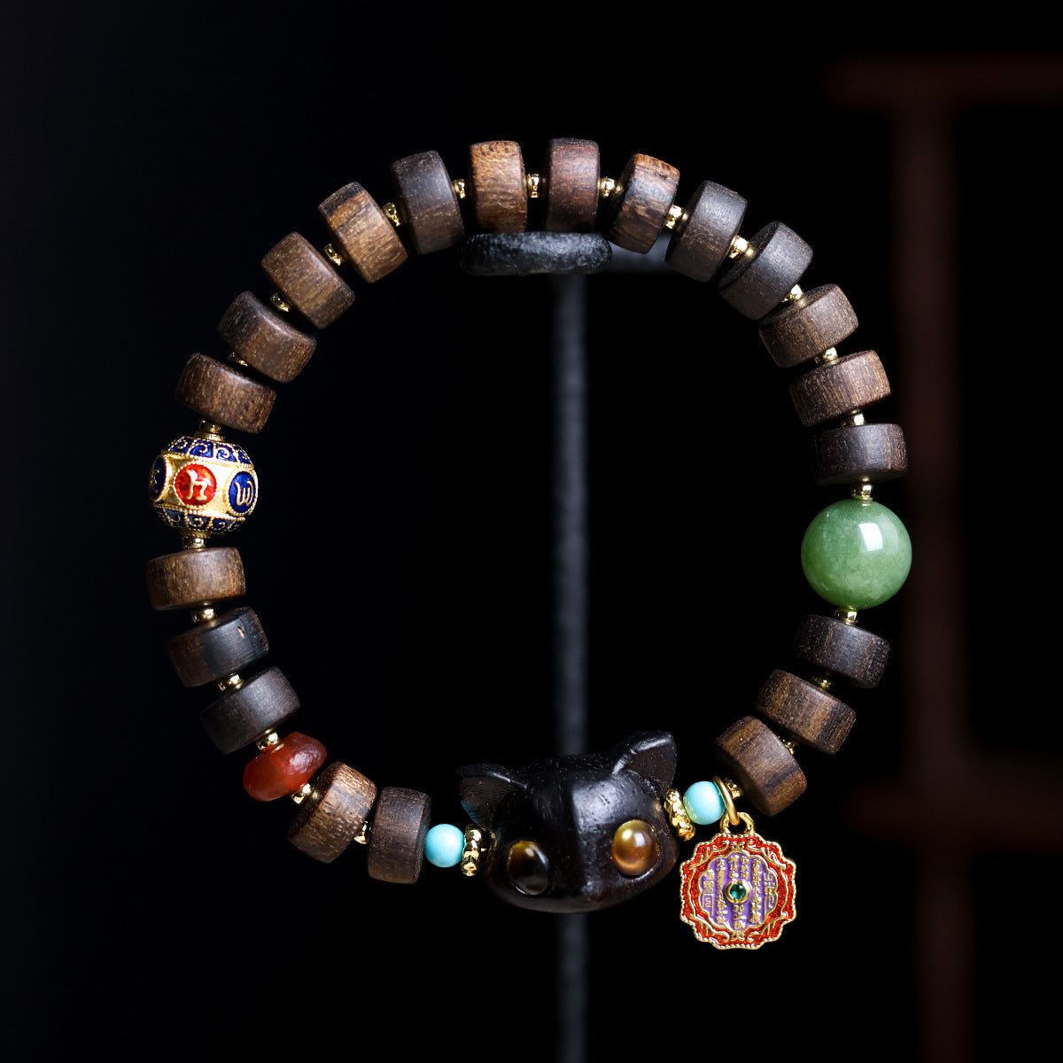 Buddha Life Agarwood Tablet Bead Bracelet Women's