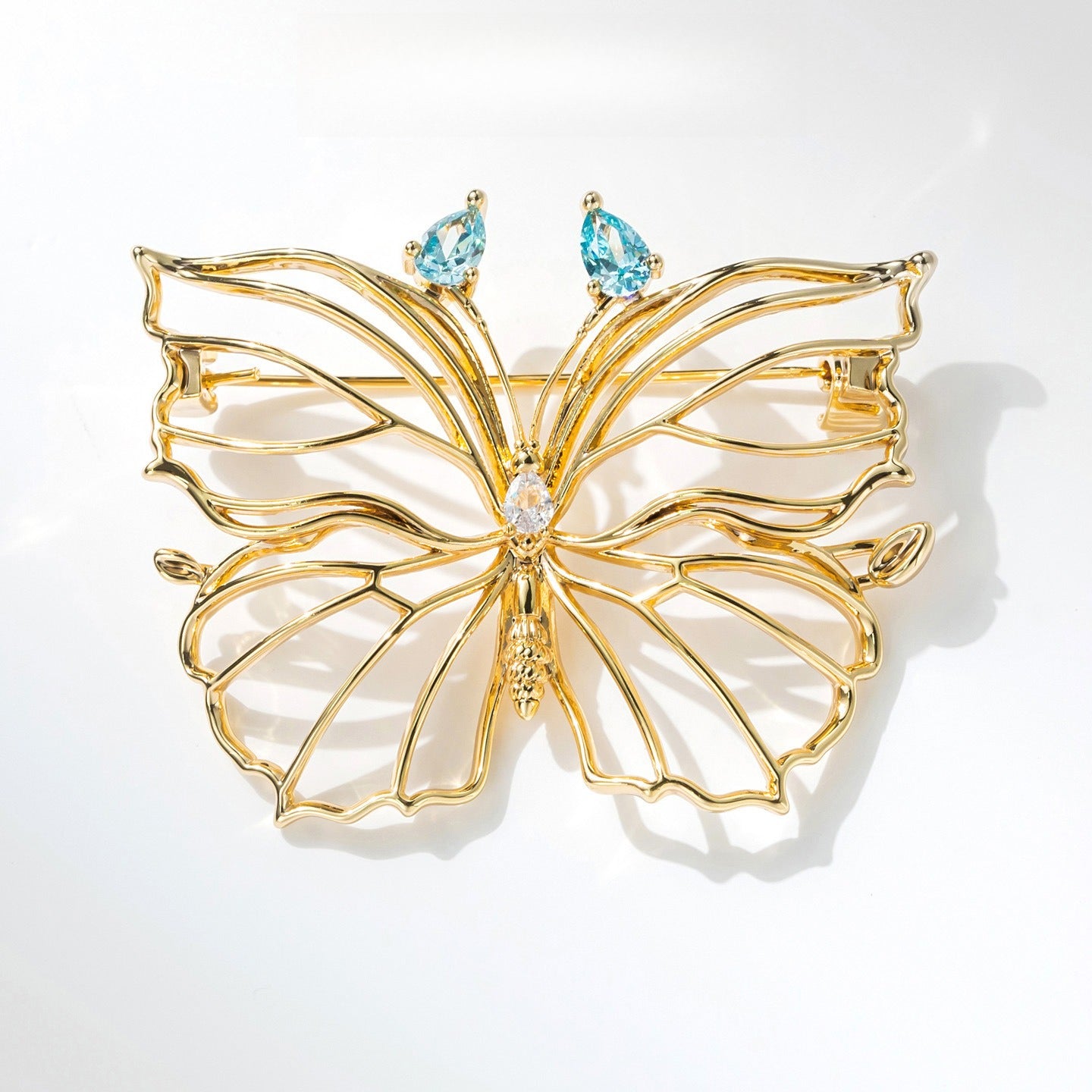 Hollow butterfly brooch, copper alloy diamond-encrusted light luxury high-end literary fashion commuter insect accessories