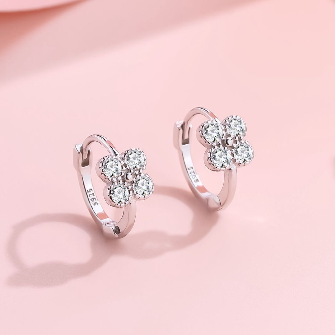 925 silver four-leaf clover earrings Korean version of fashion simple exquisite lucky grass ear buckle Internet celebrity ins flower circle earrings