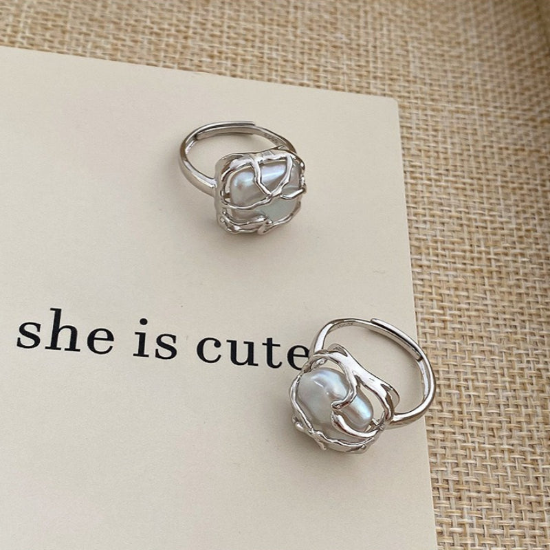 Hot-selling ring women's light luxury high-end sense S925 sterling silver baroque square pearl niche design ring