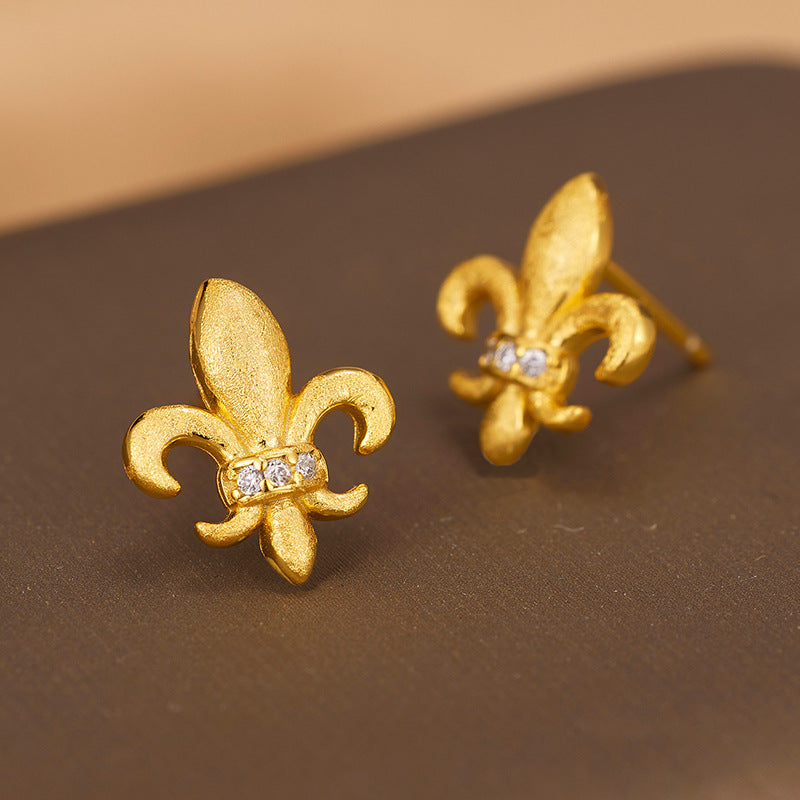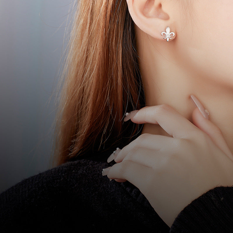 S925 sterling silver stud earrings female niche design high-end sense retro light luxury trend iris matte brushed earrings