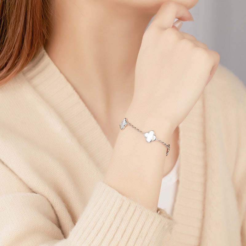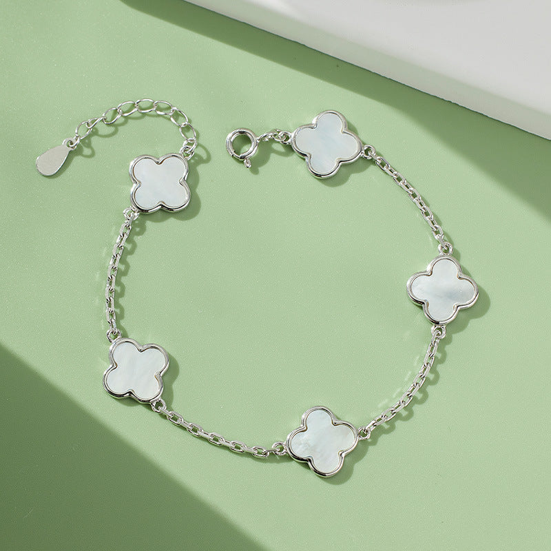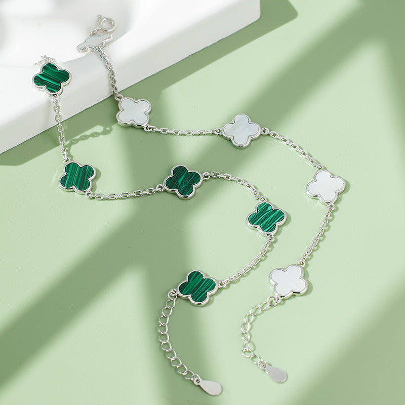 New bracelet light luxury high sense 925 sterling silver niche design exquisite lucky grass mother shell malachite hand jewelry