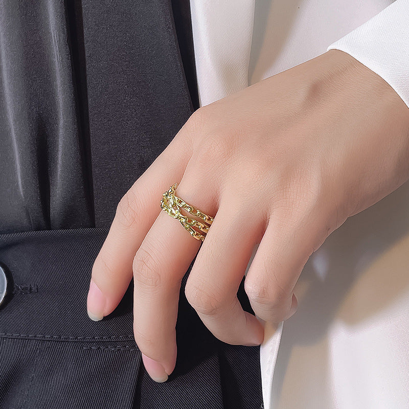 S925 sterling silver ring women's simple design double-layer winding chain open ring