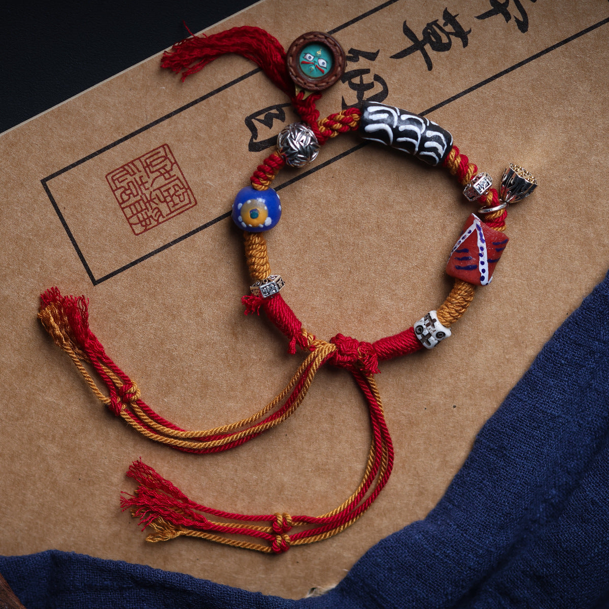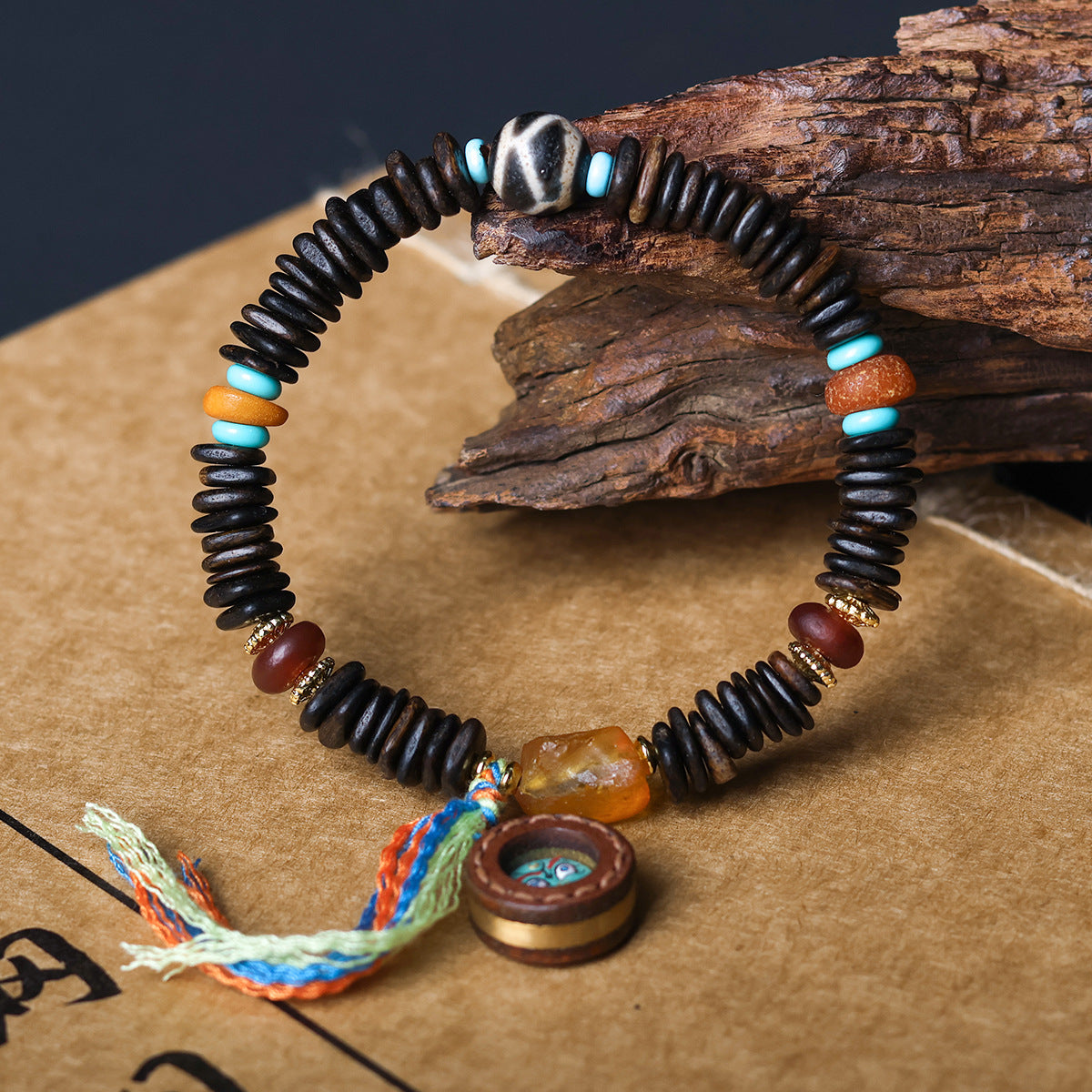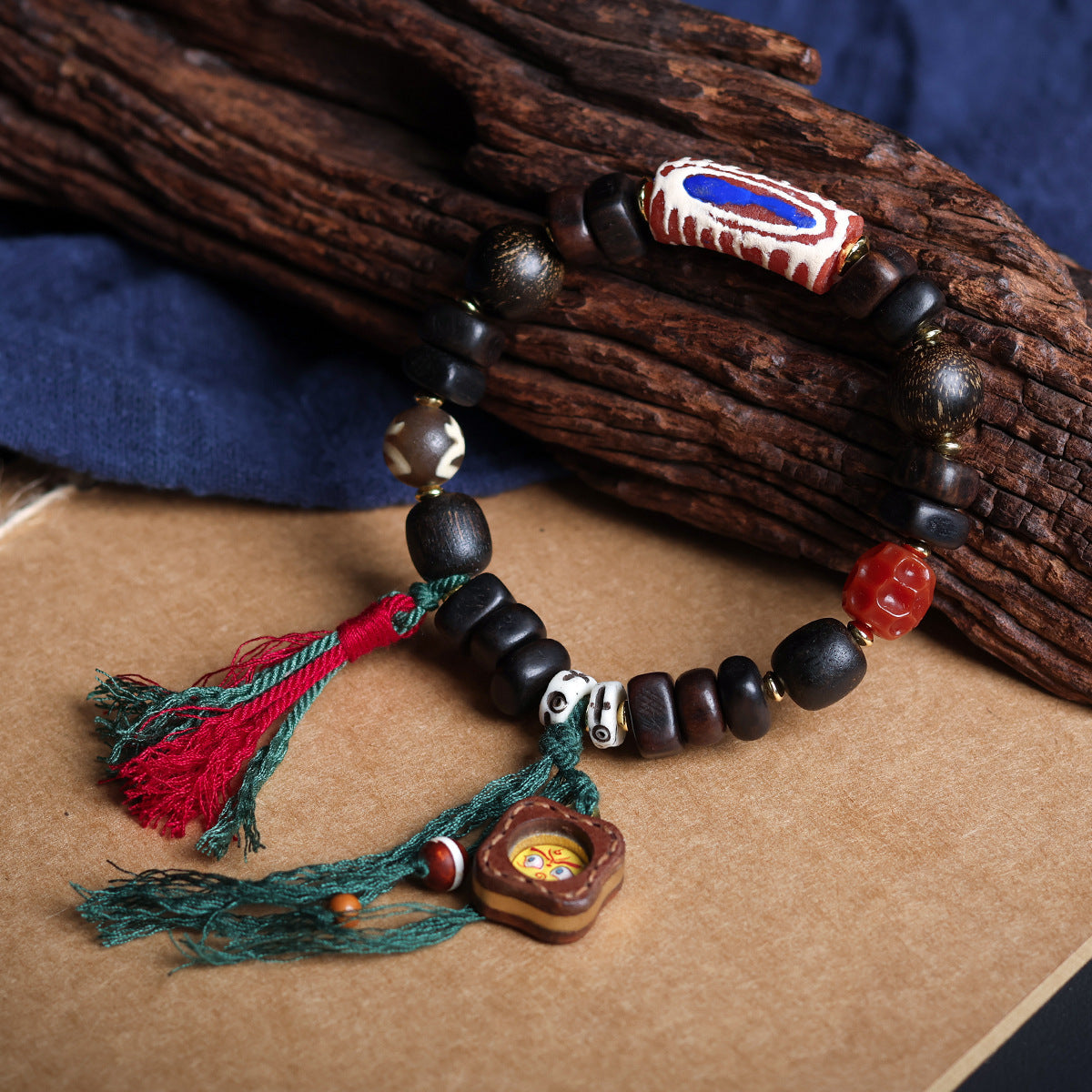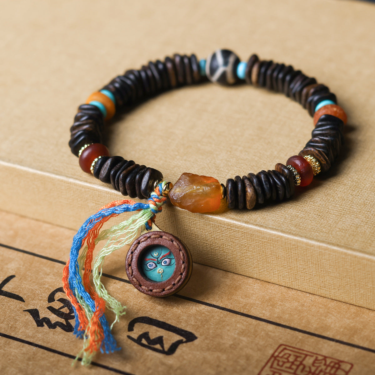 Buddha Life Daragan Agarwood Bracelet Cowhide Sewn Painted Five-way God of Wealth Thangka Pendant Female