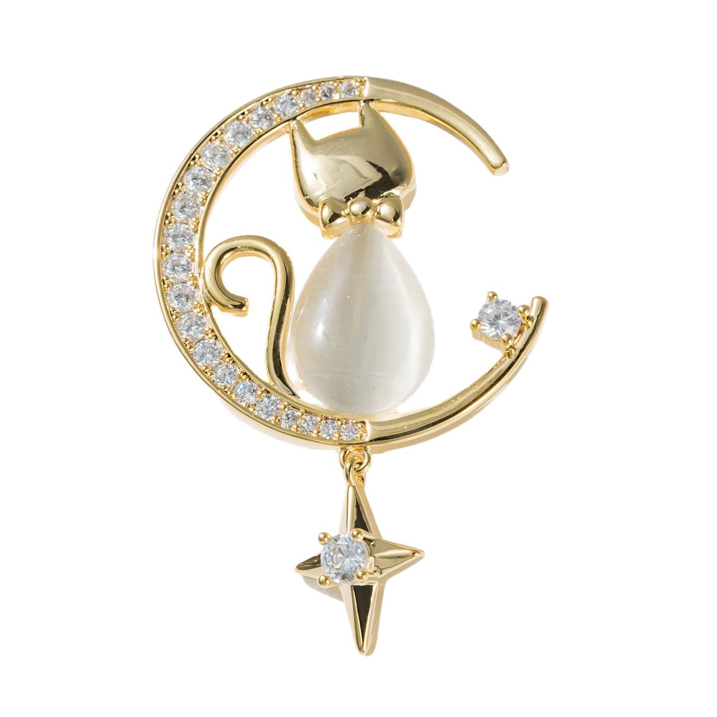 Diamond Moon Star Cat Brooch Anti-light Brooch