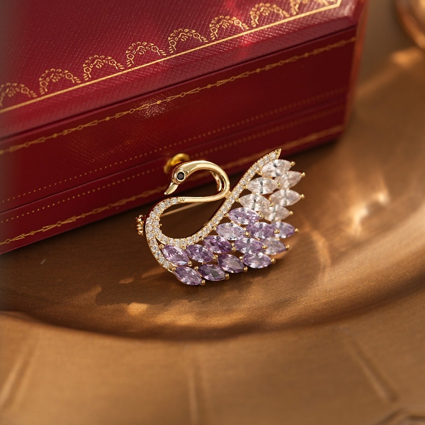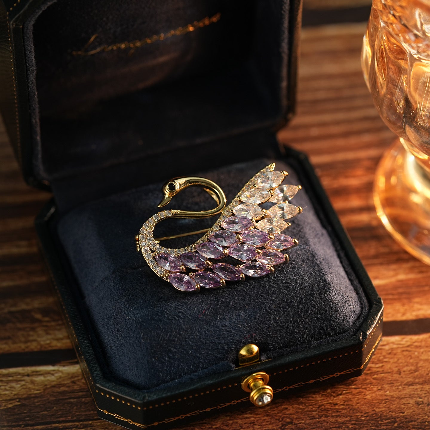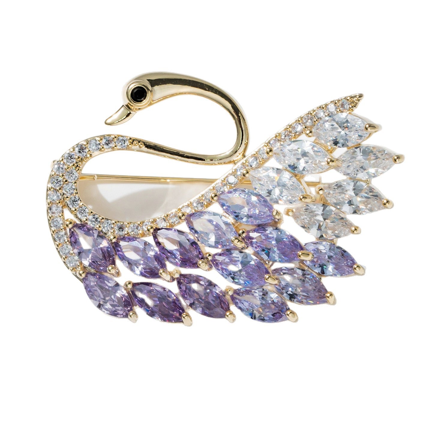 Gold Purple Color Gradual Change Crystal Swan Animal Model Versatile Coat Brooch Women