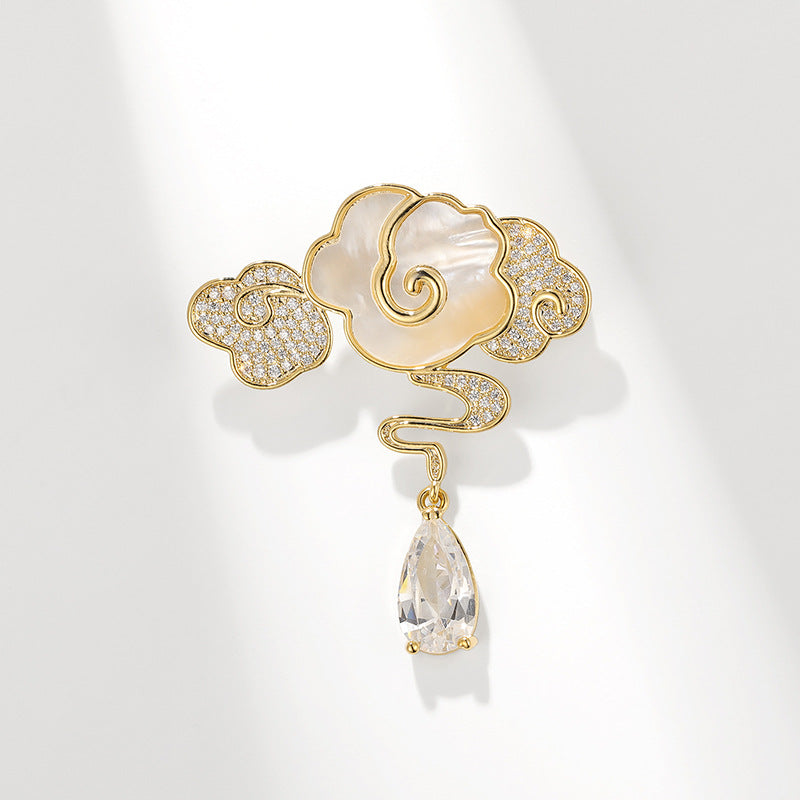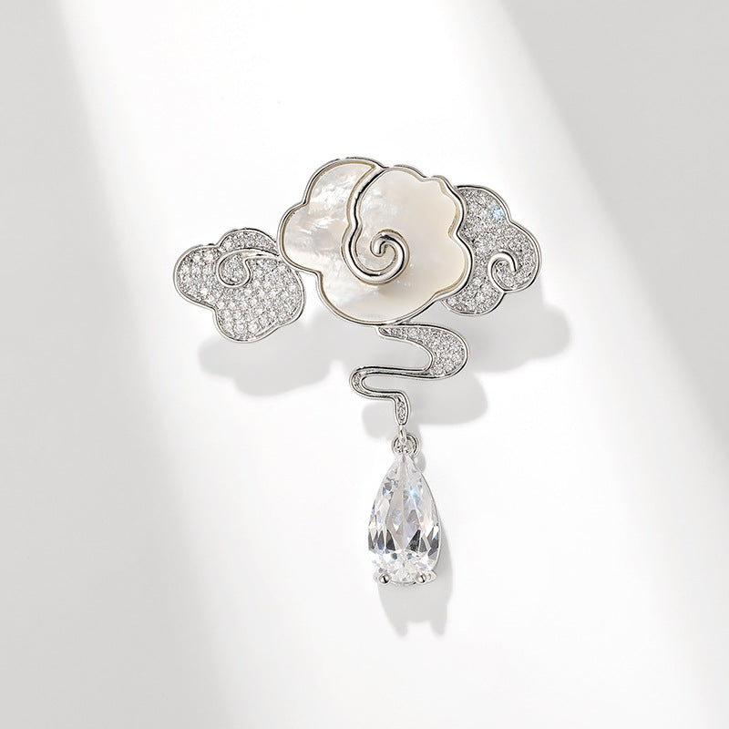 High Fashion Natural Shell Cloud Brooch, Water Drop Zircon Auspicious Cloud Brooch Clothing Accessories Pin