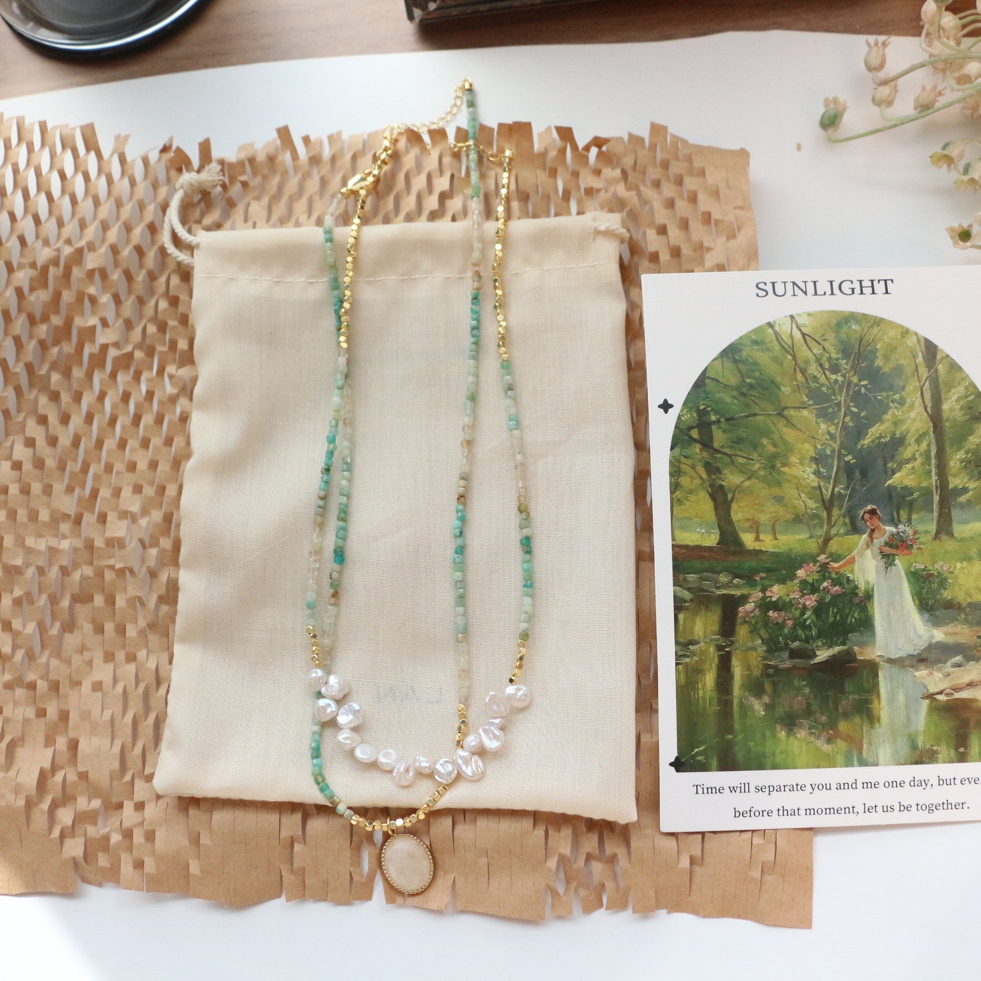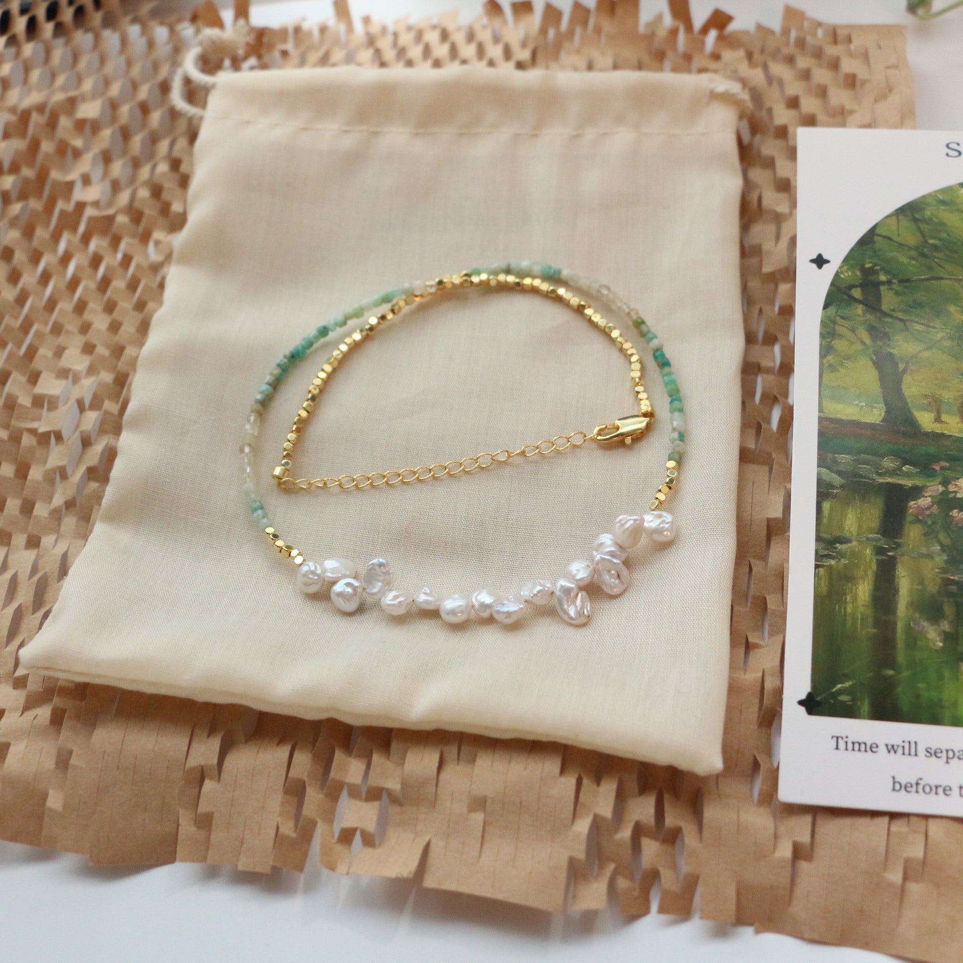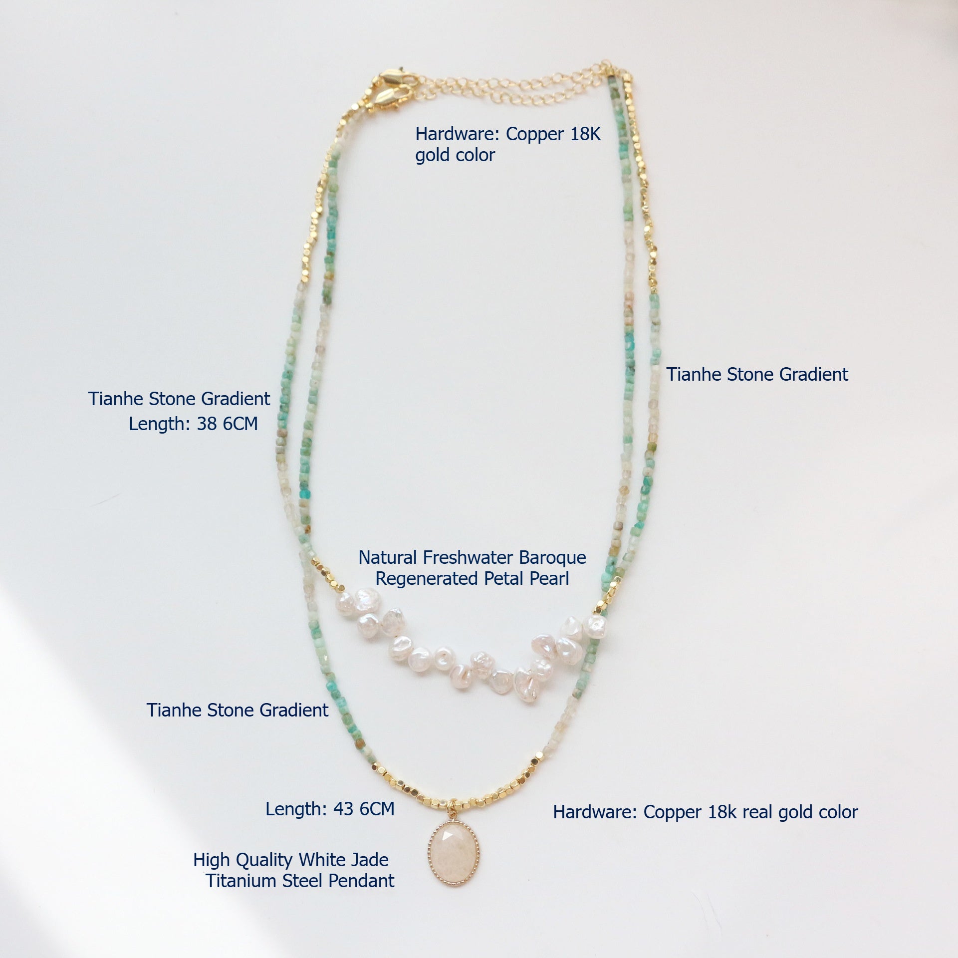 Buddha Life Natural Hetian Stone with Baroque Pearls, Necklace Bracelet, Copper-plated 18k Gold