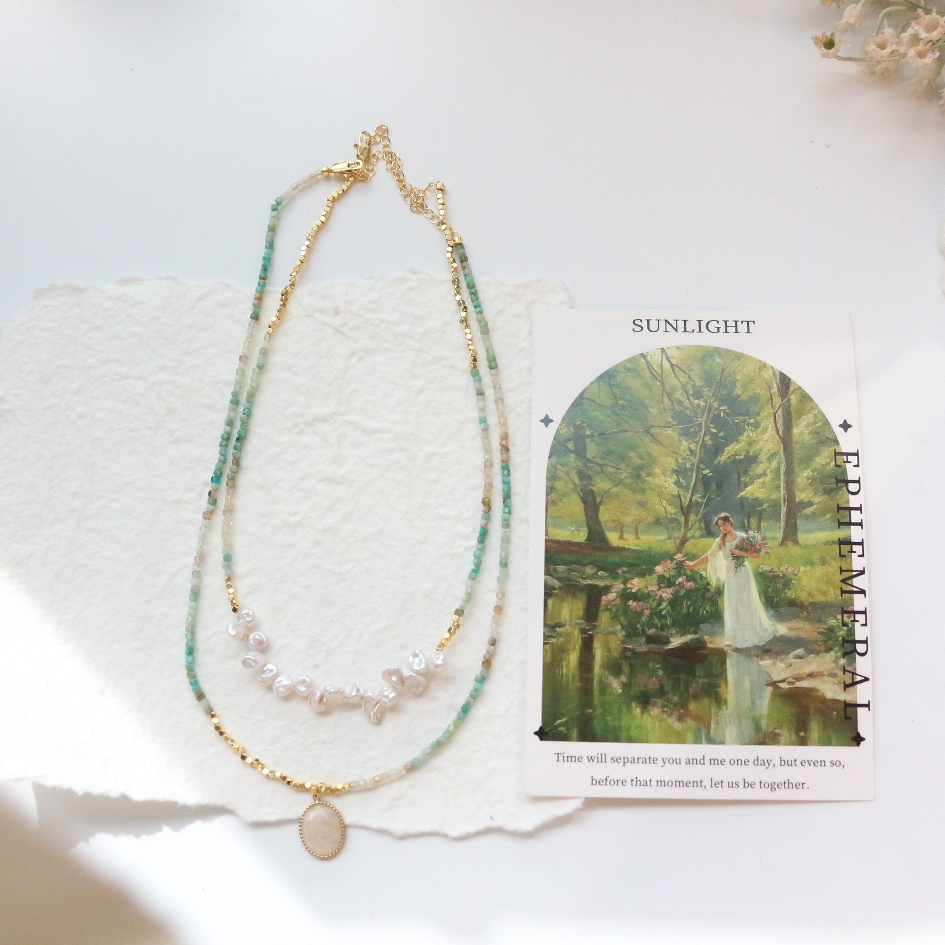 Ink Color Natural Tianhe Stone Gradual Change Process Regenerated Petal Beads Creative Beaded Necklace Copper Bag 18k Gold