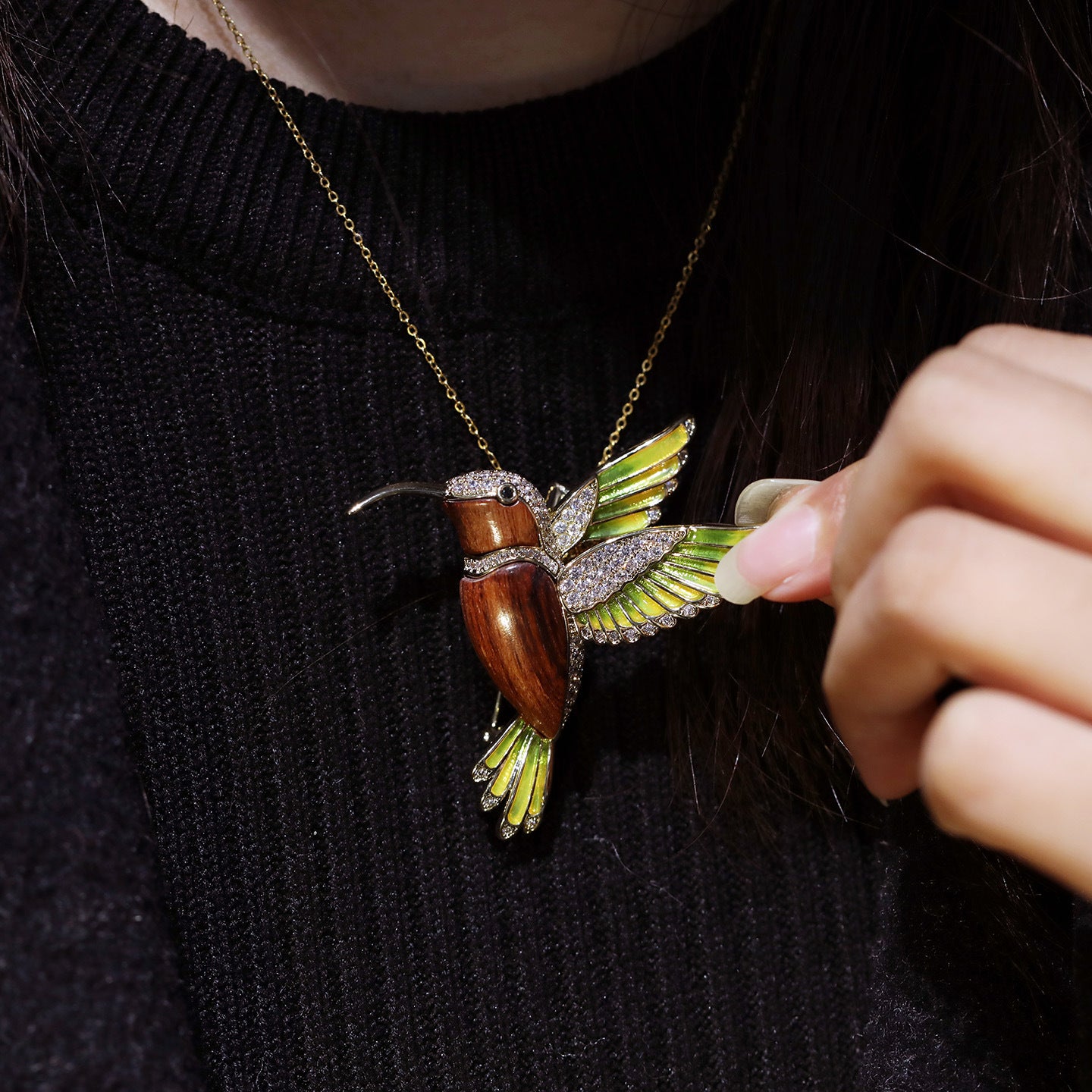 Khaki Nature Enamel Log Hummingbird Brooch Pendant Dual-purpose Corsage Clothing Accessories