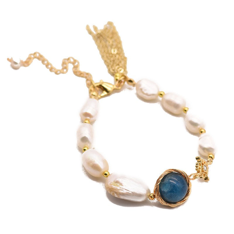 Natural baroque pearl kyanite bracelet retro fringed bracelet niche high-end jewelry European beautiful women accessories
