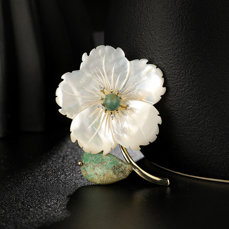 Natural Shell Peach Blossom Brooch