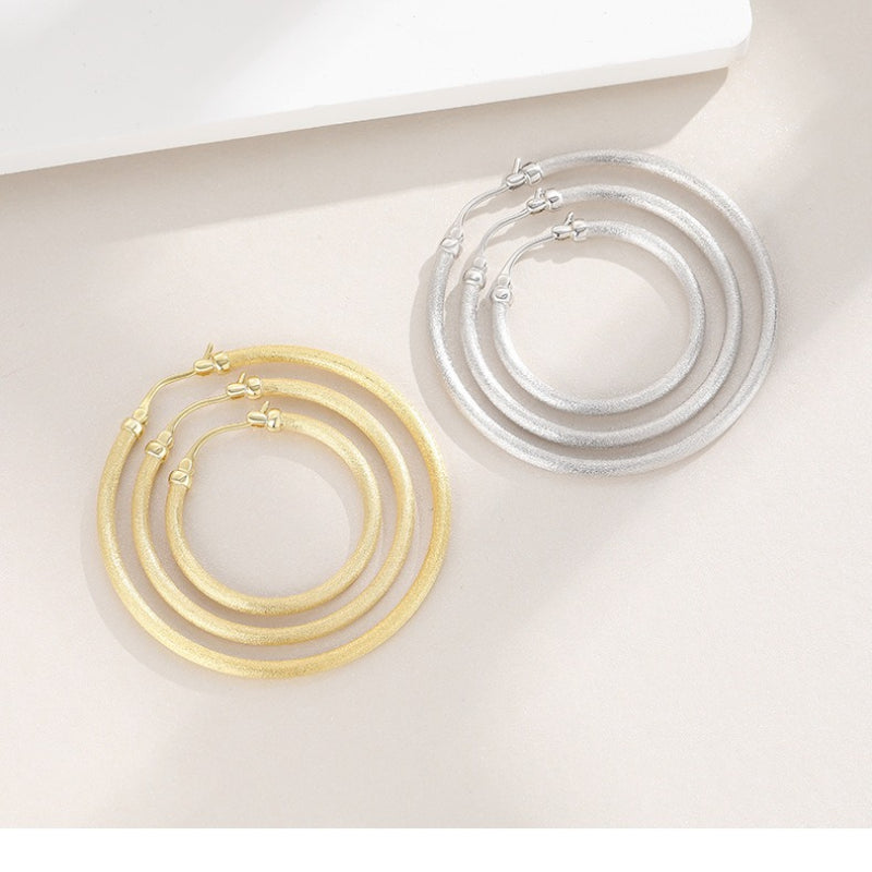 New 925 Sterling Silver Earrings Matte Circle Stud Earrings