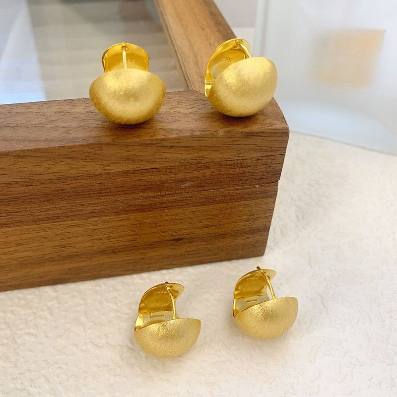 New European and American light luxury earrings S925 sterling silver stud earrings fashion temperament design round brushed earclips personalized earrings