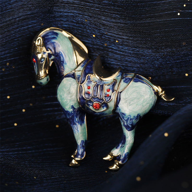 Painted Oil Blue Horse Brooch, Diamond Set, BMW Corsage, Men's Personalized Clothing Accessories Pin Gift