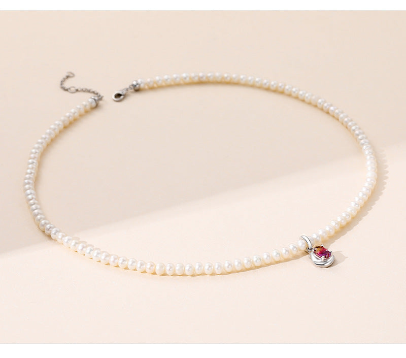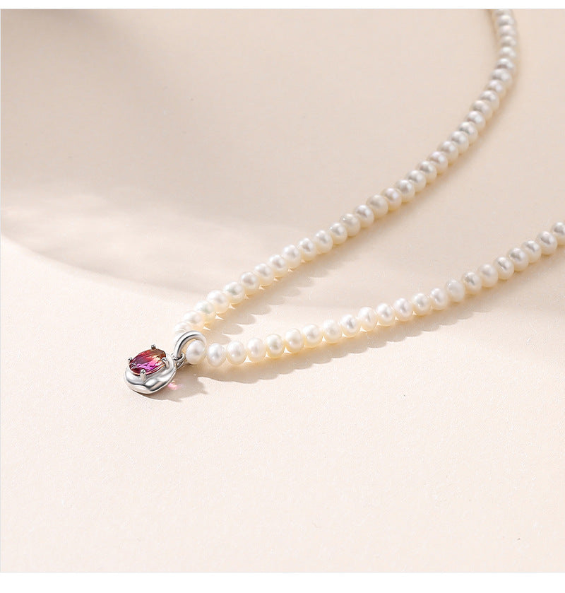 New pearl necklace S925 silver necklace femininity light luxury design French girly baroque collarbone chain
