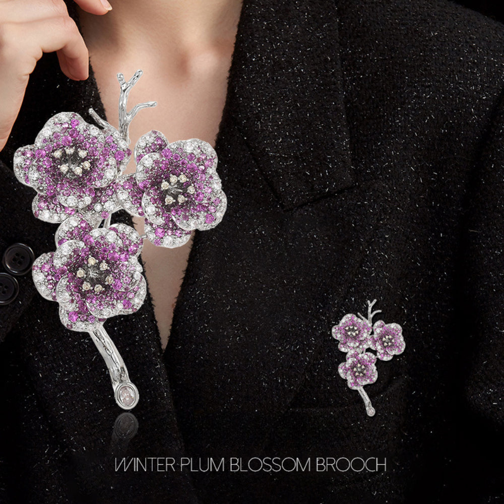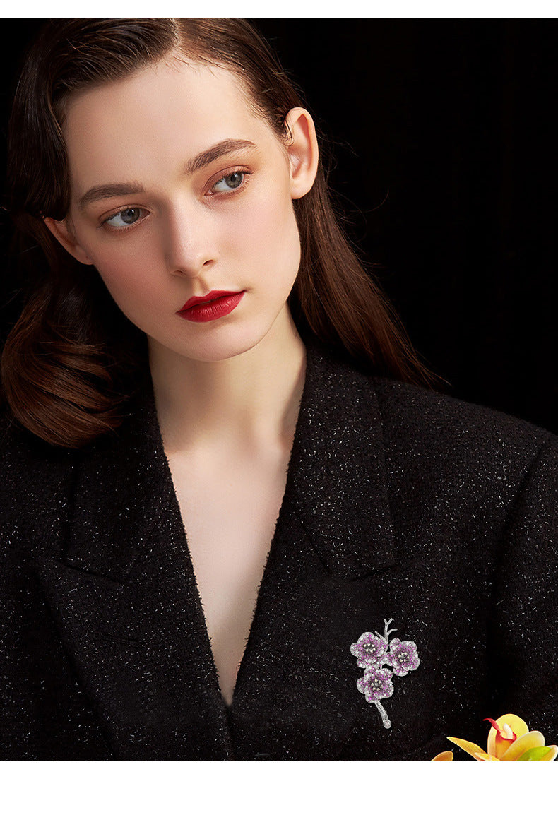 Purple Winter Plum Blossom Flower Brooch Christmas Gift, New Year Gift