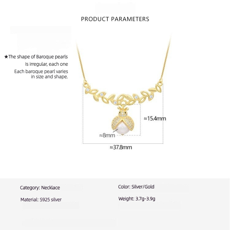 S925 Silver Baroque Pearl Seven Stars Ladybug Necklace