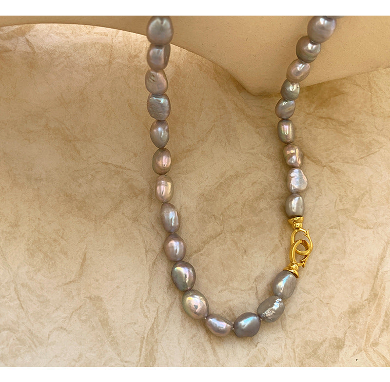 New S925 sterling silver baroque pearl necklace women's design high-end temperament collarbone chain jewelry