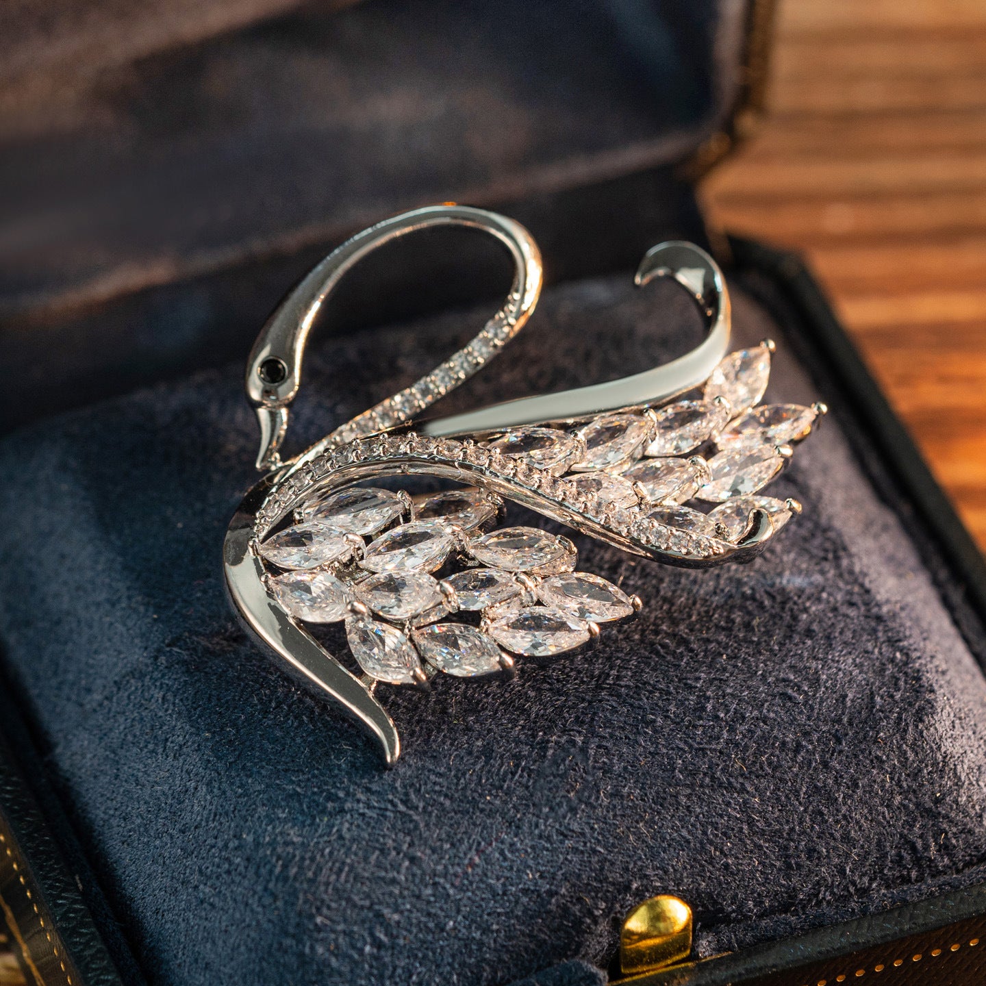 Light luxury exquisite high-end design silver white swan animal versatile suit coat zircon brooch