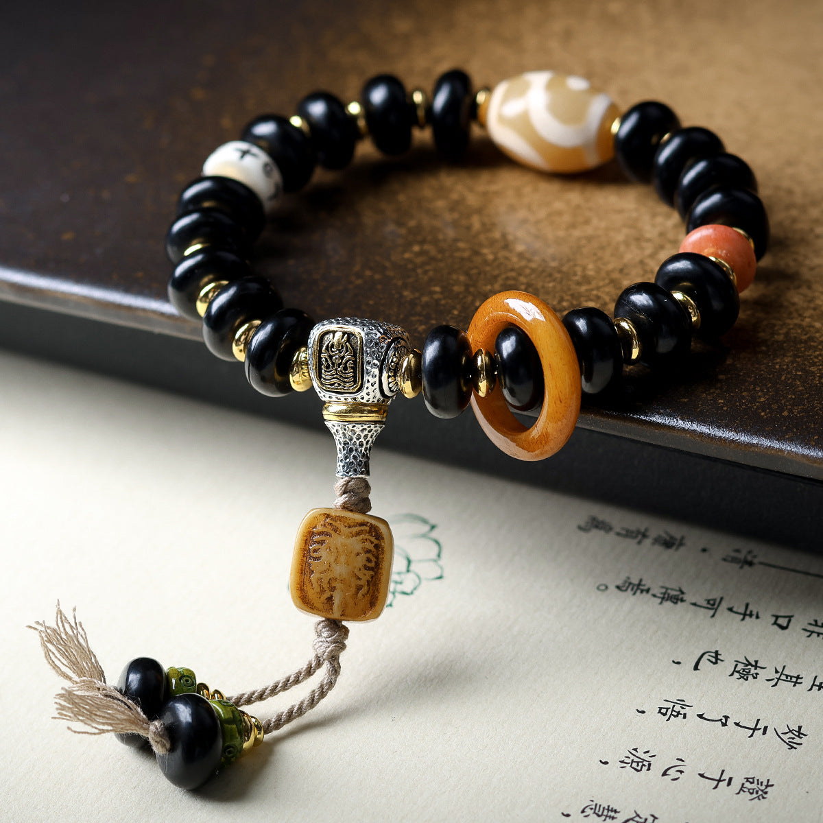 Buddha Life Tibetan Black Horns Abacus Bead Dzi Bead Bracelet