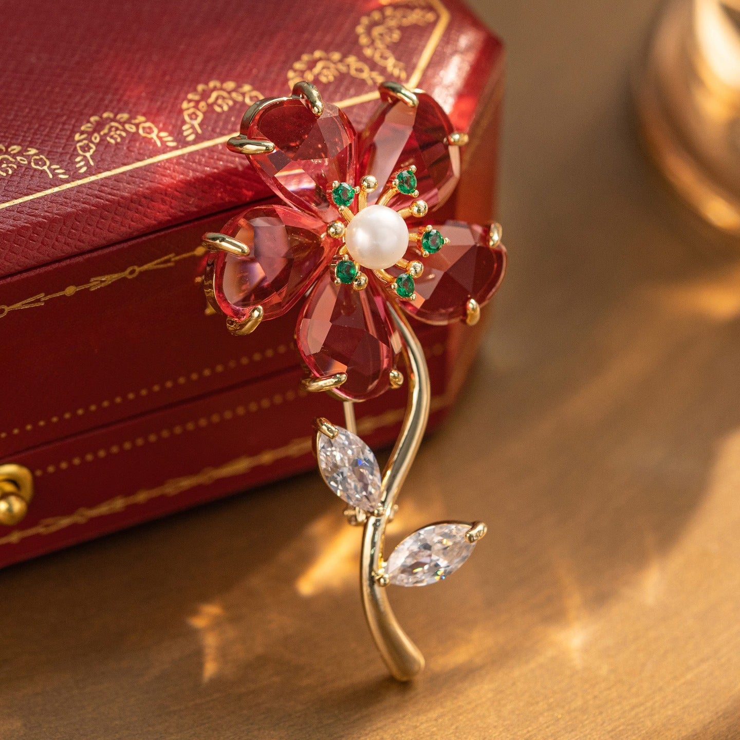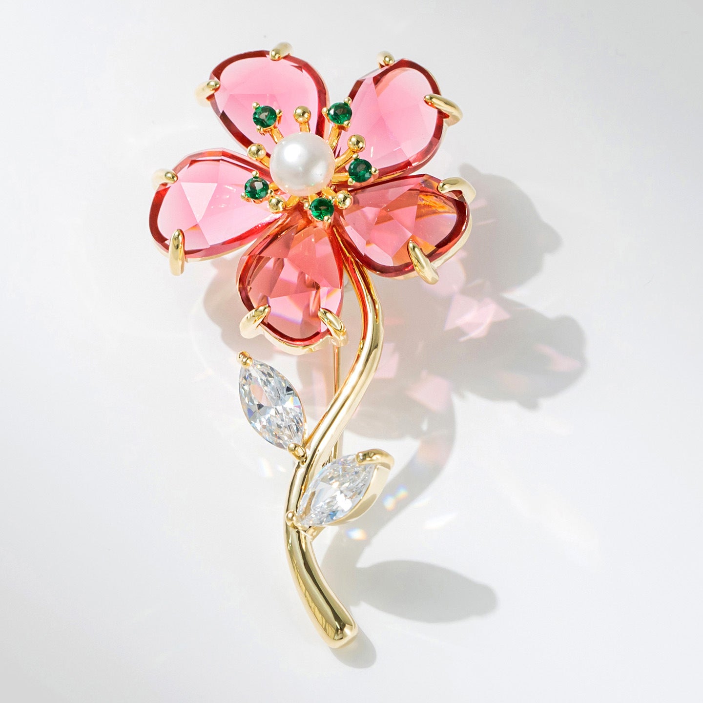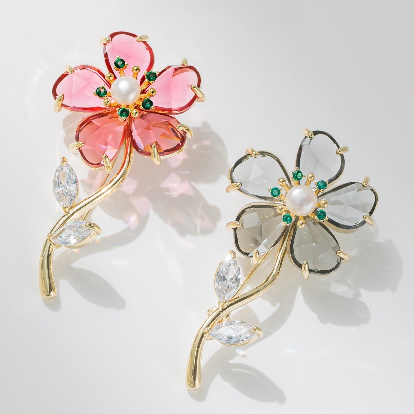 Color: Freshwater Pearl Grey Crystal Flower Brooch