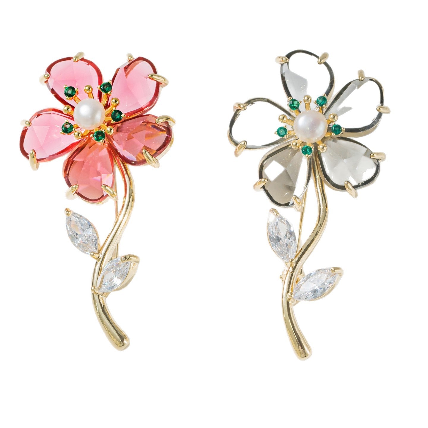 Retro light luxury freshwater pearl gray crystal high-end suit coat brooch accessories